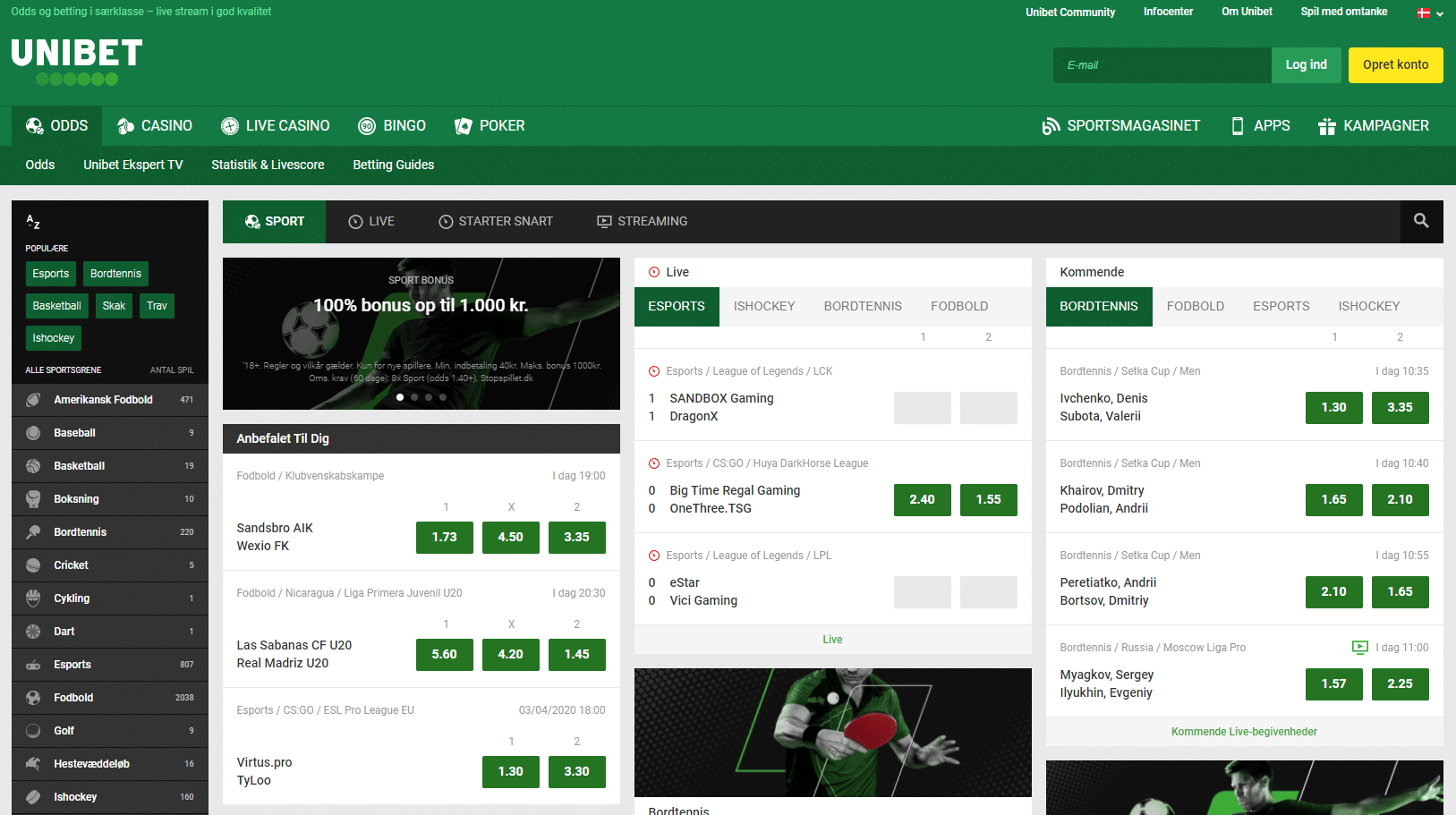 - Bet365: Er en anden sporspiller på det danske marked. Her finder man mange af de samme fordele som Unibet. Bet365 er en allround god bookmaker og er med helt fremme på det danske marked. Der er også live streamingtjeneste tilgængelig.