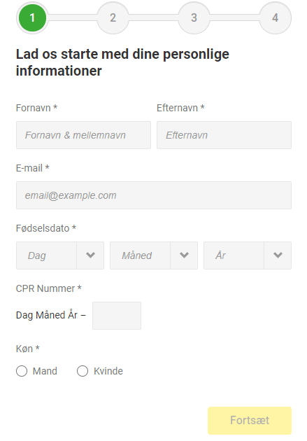 - Indtast de påkrævede personlige oplysninger, herunder CPR-nummer.