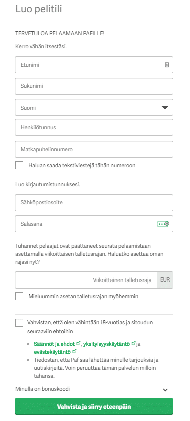 Rekisteröityminen Sivustolle, kun Pelaajan Tiedossa On Paf Bonuskoodi