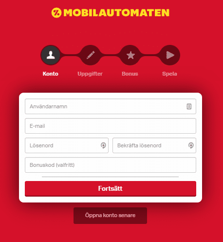 Mobilautomaten bidrar med en modern och smidigt registrering. Det allra första steget du måste ta är att klicka på knappen ovan, vilket tar dig vidare till casinot.