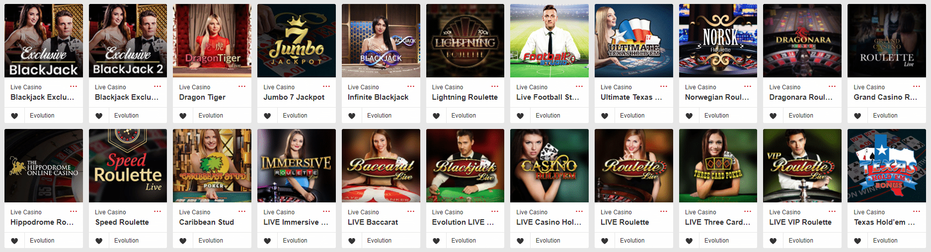 Samtliga av spelen levereras av en och samma speltillverkare, nämligen Evolution Gaming. Du kan därmed känna dig säker på att spelen håller allra högsta kvalité, samt att allting går rätt till.