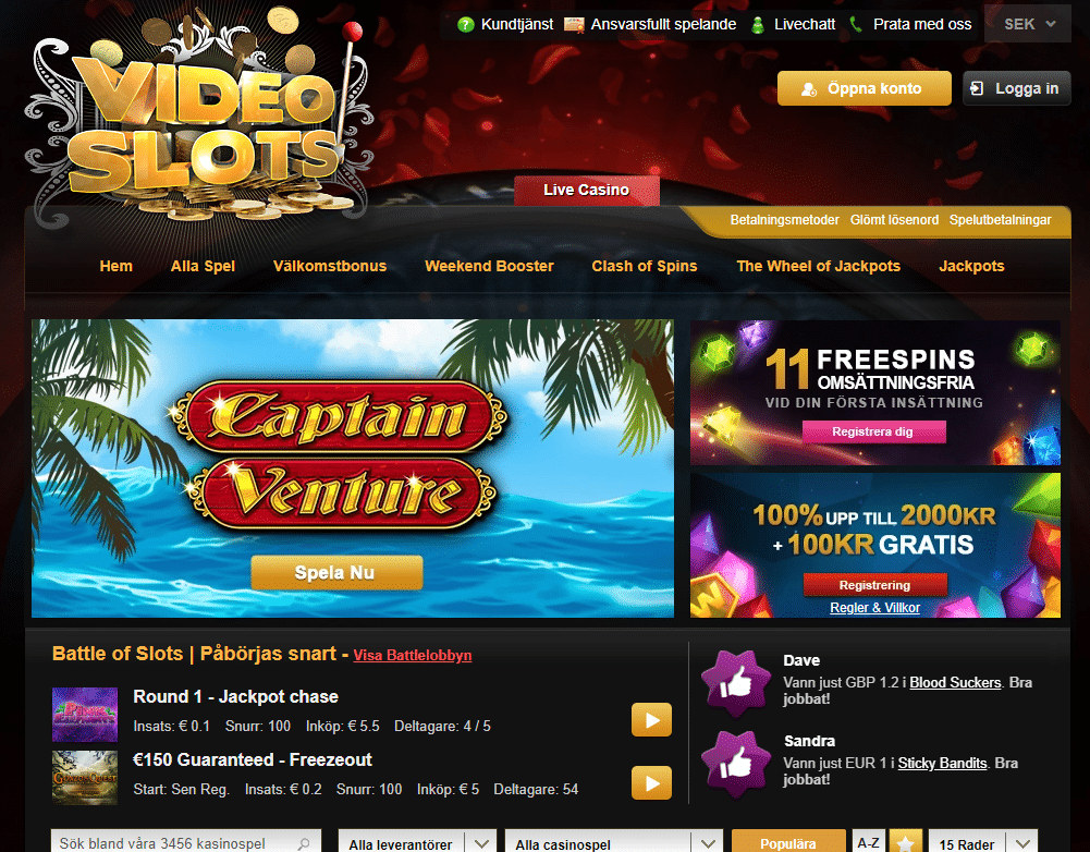 - Videoslots insättningsbonus - 100% upp till 2000 kronor + 11 free spins